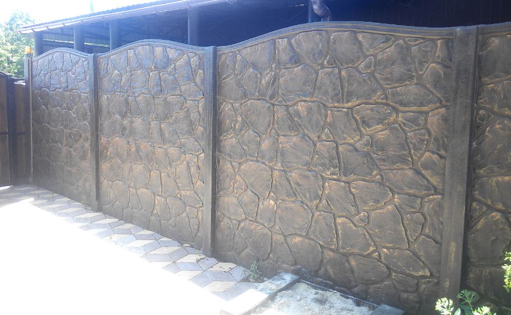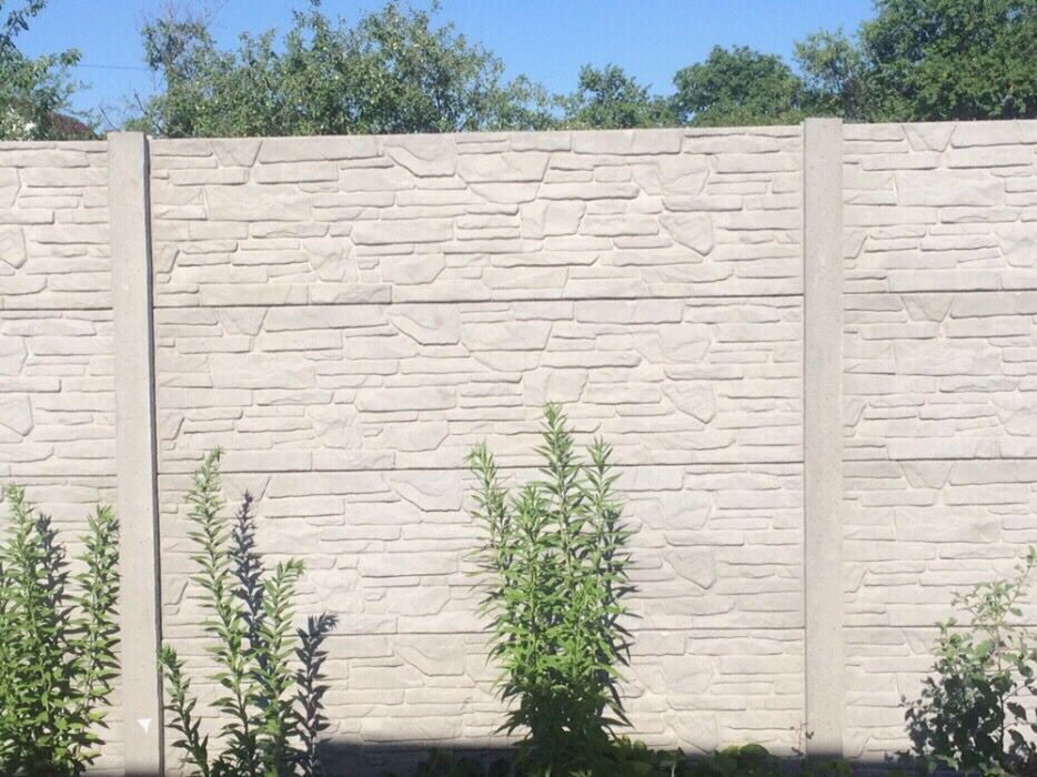 Бетонный забор из крафтовых панелей и монолитных железобетонных столбов внутри. Легок при сборке и надежен в эксплуатации. Идеально подходит для ограждения жилых комплексов, офисных центров и загородных домов.